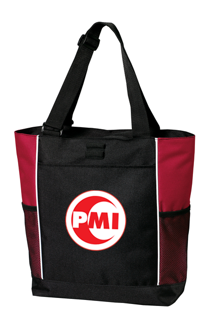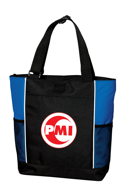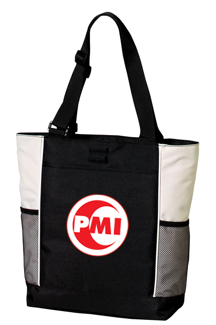 This tote has a secure zippered top and adjustable webbing handles for easy carrying.
